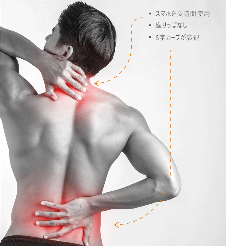 このような生活スタイルが一般的となっている今、「頸椎」と「腰椎」が悲鳴をあげているかもしれません。