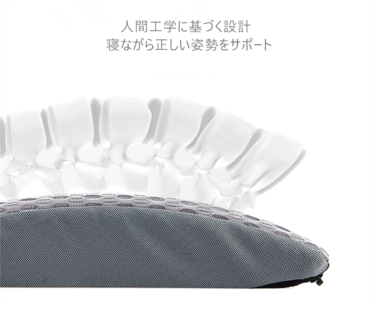 首や腰のカーブにフィットしながら安定して支えることができるサポート力を実現するため、クッション本体には形状記憶低反発素材を採用しました。