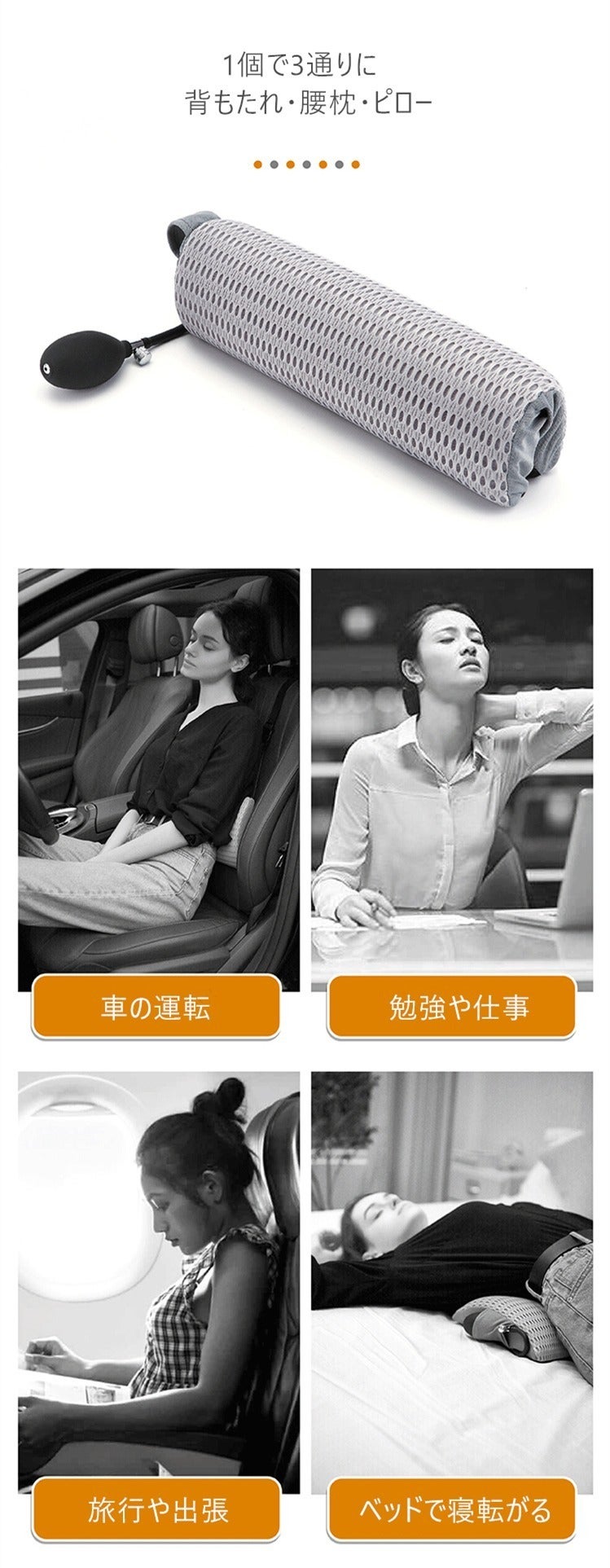 簡単に持ち運べる背もたれ・腰枕・ネックピローとして姿勢サポートに・・・
