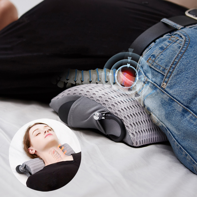 Microtouch多機能サポートクッションは、首と腰の下に当てて寝転がることで、頸椎と腰椎を気持ちよく伸ばしてくれます!