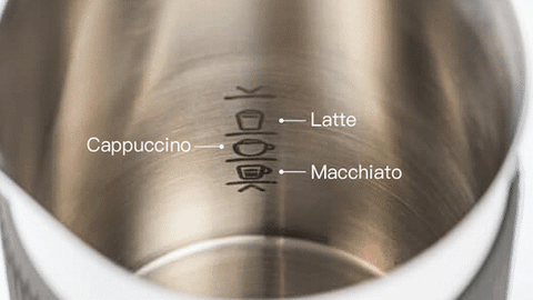 容器の内側にカップ1杯にフォームミルクを作るのに必要なミルクの量がラテ、カプチーノ、マキアートと3つのドリンクの種類別に規定量がラインとアイコンで示されていますので、量を間違う事もなくまた、計量カップなどを使わずに済むので洗い物も減らす事ができます。