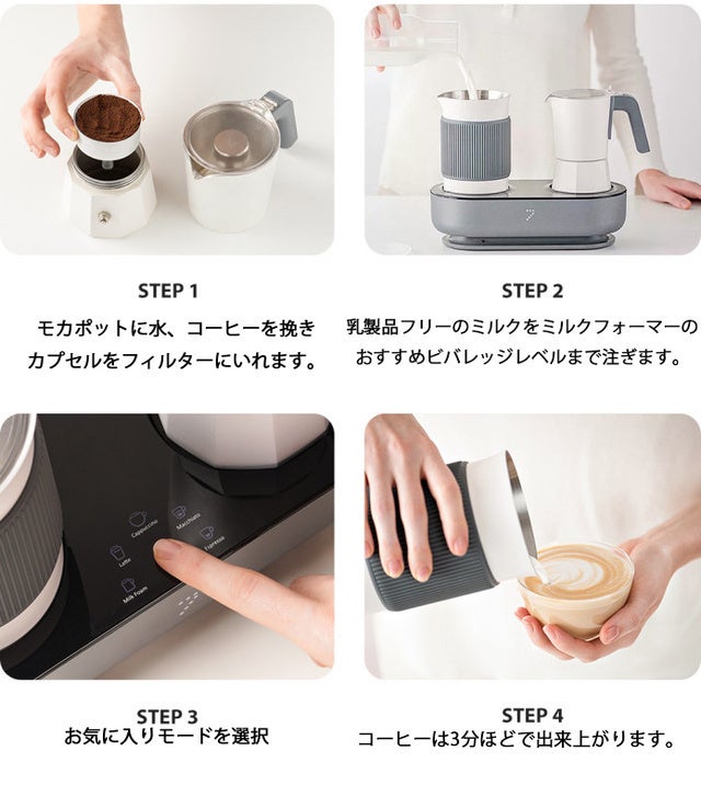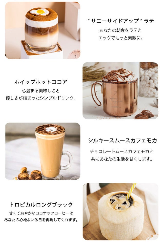 4つの簡単なステップでカフェスタイルのドリンクを作ることができます。
