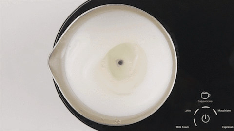 ミルクを泡だて器に注いで、泡立てモードをタップするだけで、簡単にフォーム