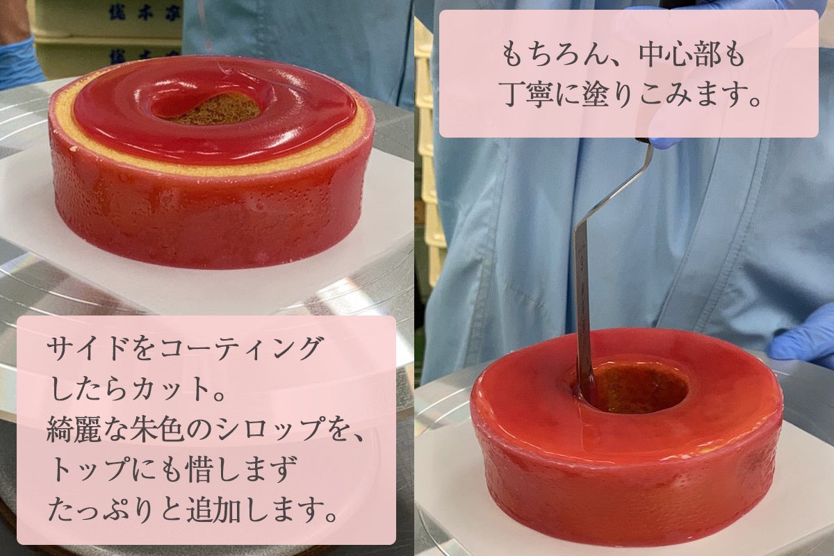 そんな歴史ある煉羊羹を、生地と絶妙なバランスのシロップ状に。シャリッとした食感は、しっとりとした生地と相性抜群。お口の中で感動が広がります。