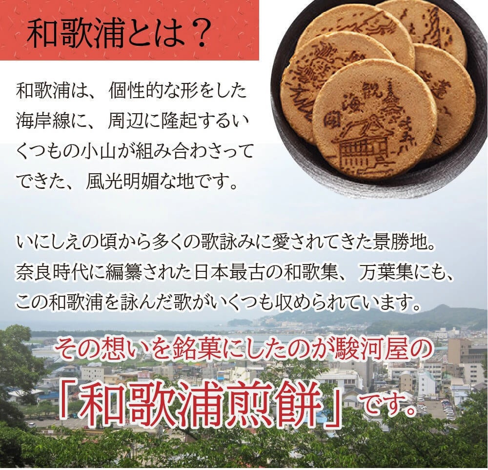 たっぷりの卵を使った生地を焼き上げた昔懐かしい味の和歌山銘菓。万葉集にも詠われた和歌浦の名勝が焼印されています。
