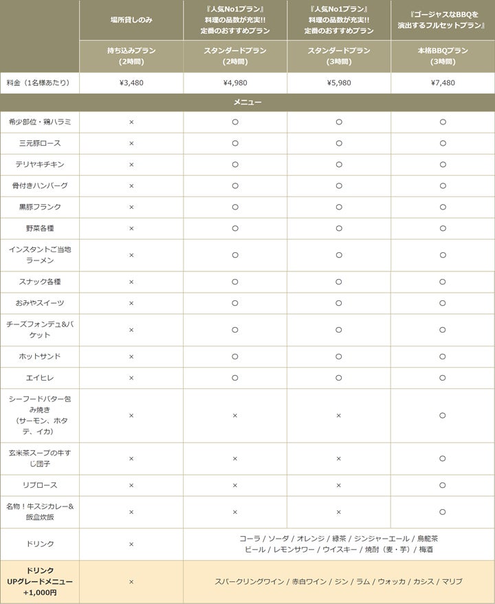 愛犬ヴィレッジの屋上BBQでは手ぶらプラン3種と持ち込みプラン1種をご用意しています。