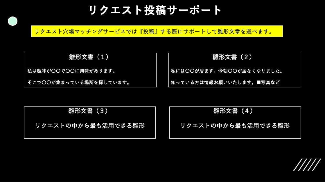 ⑴『「リクエスト側」と「レスポンス側」の穴場マッチング機能』