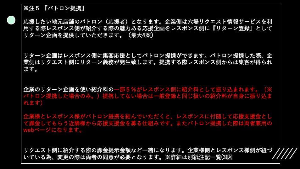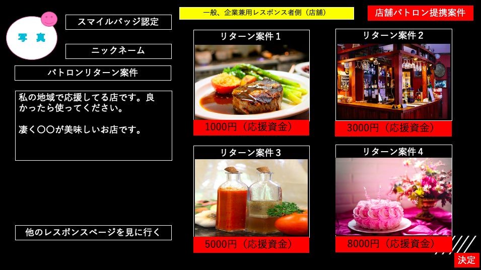 <一般、企業兼用レスポンス者側案件1詳細(店舗)>(パトロン提携した際)