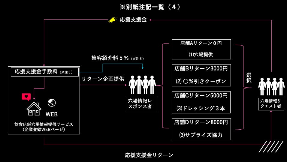 ⑶ 店舗登録するによって支援金を活動資金として店舗で運営費としてお使いできます。(※来客者様及び穴場提供紹介者様へのリターンを含む)
