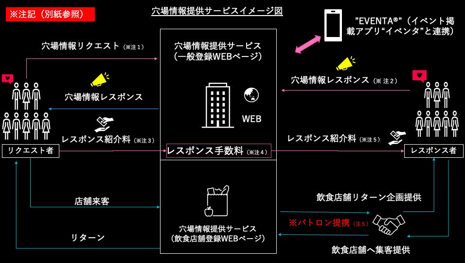 専門サイト構築後は、 ”EVENTA®”のアップデートを行い『リクエスト機能』や『リクエストされた穴場とのマッチング機能』等の様々なリクエストに応じた機能を追加していきたいと考えています。