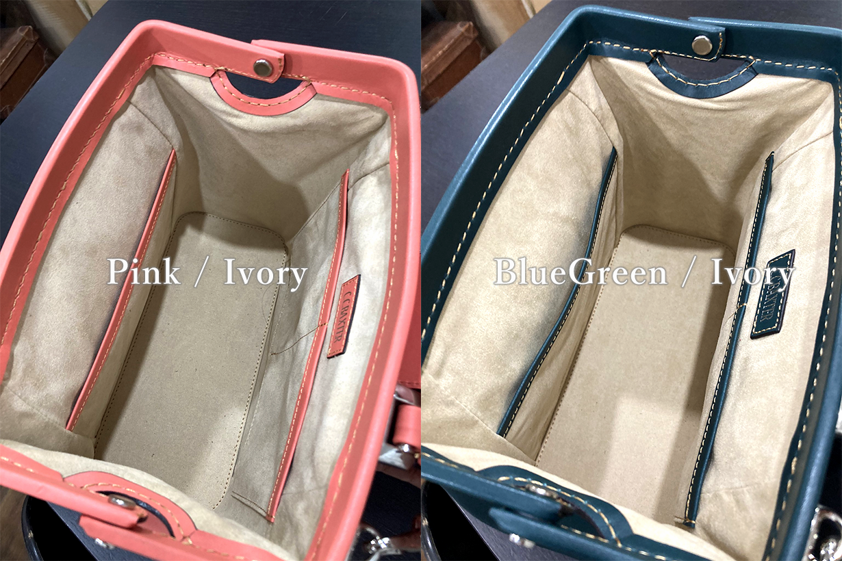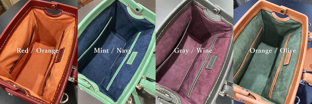ダレスバッグは大きく開口する鞄ですので、内装カラーをお好みで選んでいただきますと、日常の使用の中でお好きな色合わせを楽しんでいただけると思います。