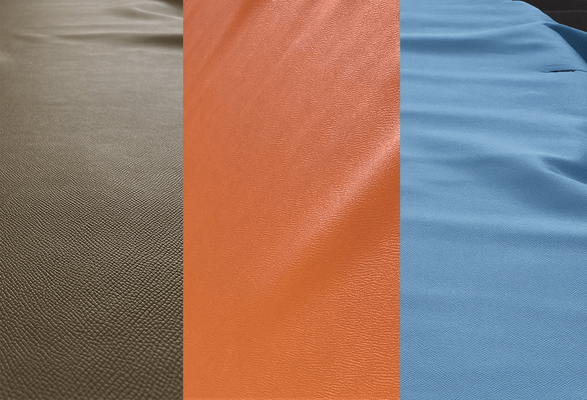 表面には緻密な型押し処理が施されており、これによって傷などもつきにくいというメリットもあり、上品な光沢と独特の質感が長く楽しめる素材です。