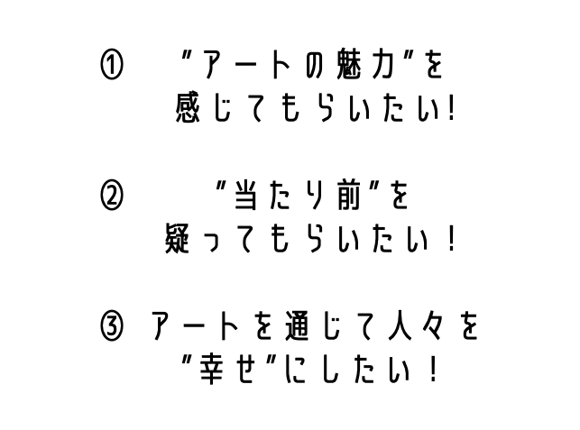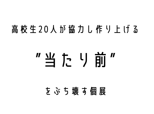 朝起きてご飯を食べられる当たり前、寝られる当たり前、電車が動く当たり前、言葉が通じる当たり前、文字が読める当たり前、見える当たり前。これらの当たり前な普遍的な事実に対して疑いの念を持って欲しいという思いで私達はこの個展を開催しようと決意しました。