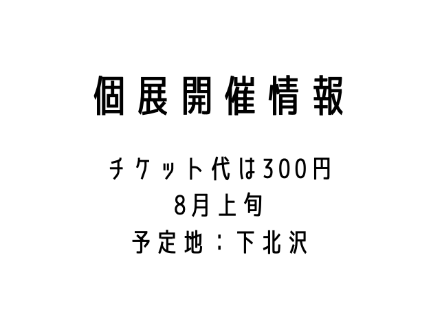 個展開催予定日:8月上旬