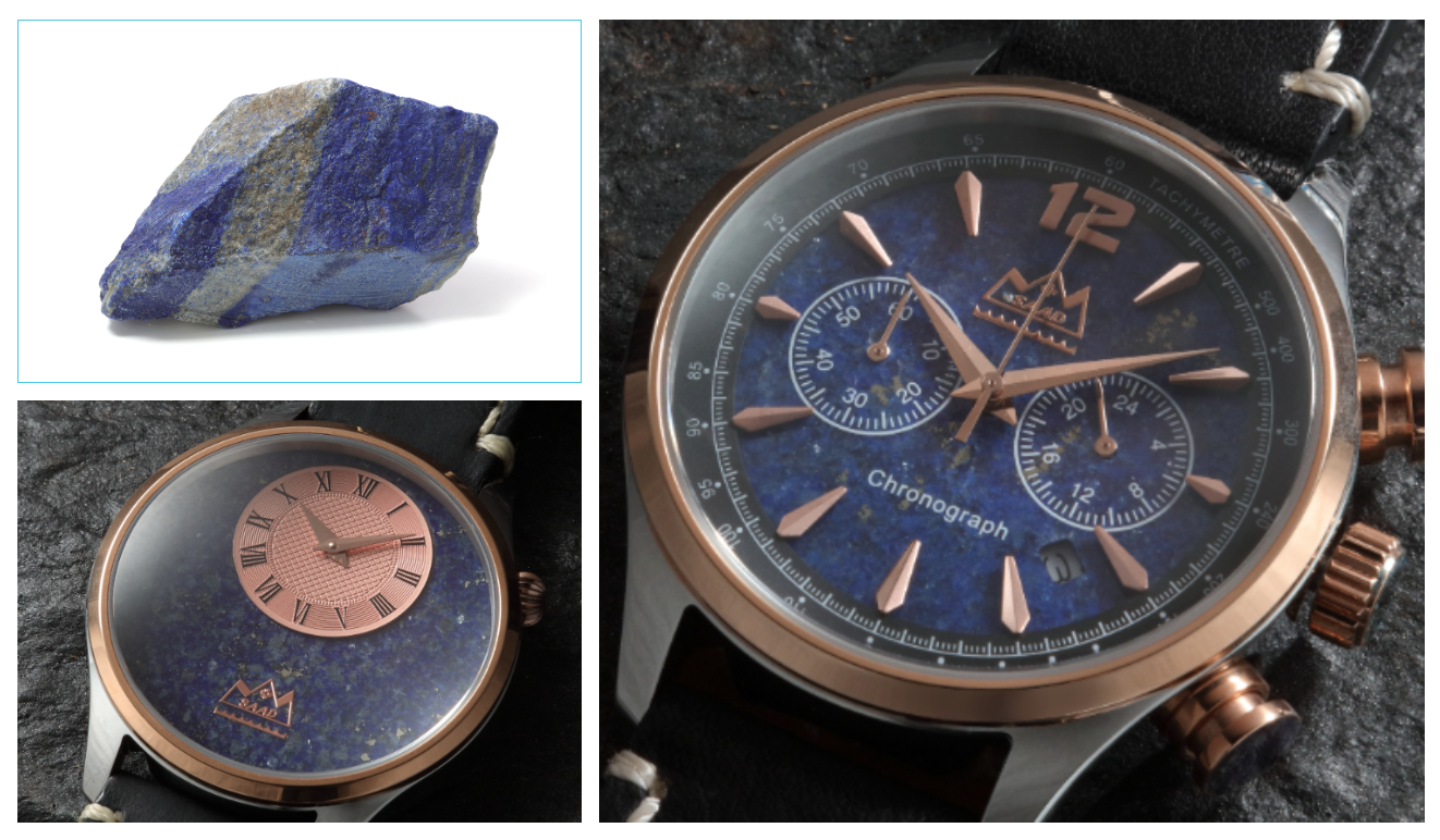 店舗で見つけて一目惚れで購入しました。天然石を使った腕時計、前から気になってはいましたが、デザインが奇抜なものが多く、普段使いには向かないイメージがあり、敬遠してました。SAADの腕時計はオンでもオフでも使えるデザインで長年使えそうだったので思い切って購入しました。デザインも気に入っていますが、なんと言っても文字盤に使用されている天然石(ラピスラズリ)の表情の美しさがたまらないです!これはなかなか写真では伝わらないので、ぜひ生でその美しさを体感してもらいたいと思います。