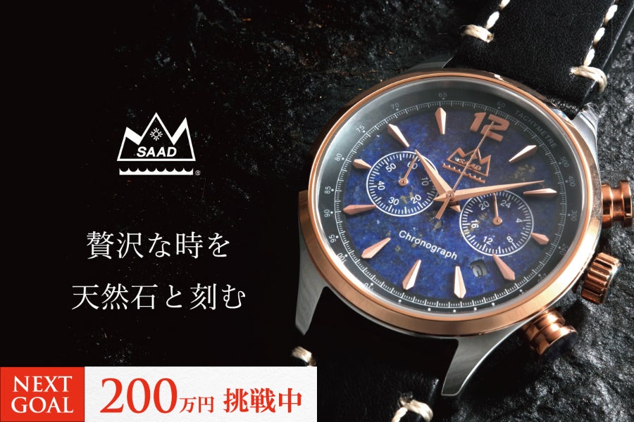 2021/09/24 19:309/26(日)でお得にSAAD WATCHを手に入れられるクラウドファンディングは終了します。この機会にあなたの一生モノの天然石ウォッチと出会ってはいかがでしょうか?準備数リターン残り僅かとなってきております!!超早割は全て完売となりましたが、MAX25%オフでお得にSAAD WATCHを手に入れられるリターンは少数ですがまだございます。【人気のラピスラズリ/ブラックオニキスモデルも残り僅か!】モデル:クロノグラフ/ラピスラズリ(対象リターン:25%オフ!!)モデル:クロノグラフ/ブラックオニキス(対象リターン:25%オフ!!)CAMP FIRE限定価格となっておりますのでぜひお見逃しのないようご覧ください。プロジェクト終了までご支援・応援宜しくお願いいたします。 もっと見る【ラスト1点です!!】32%オフ!ターコイズ腕時計(モデル:クロノグラフ/WQPR-2)