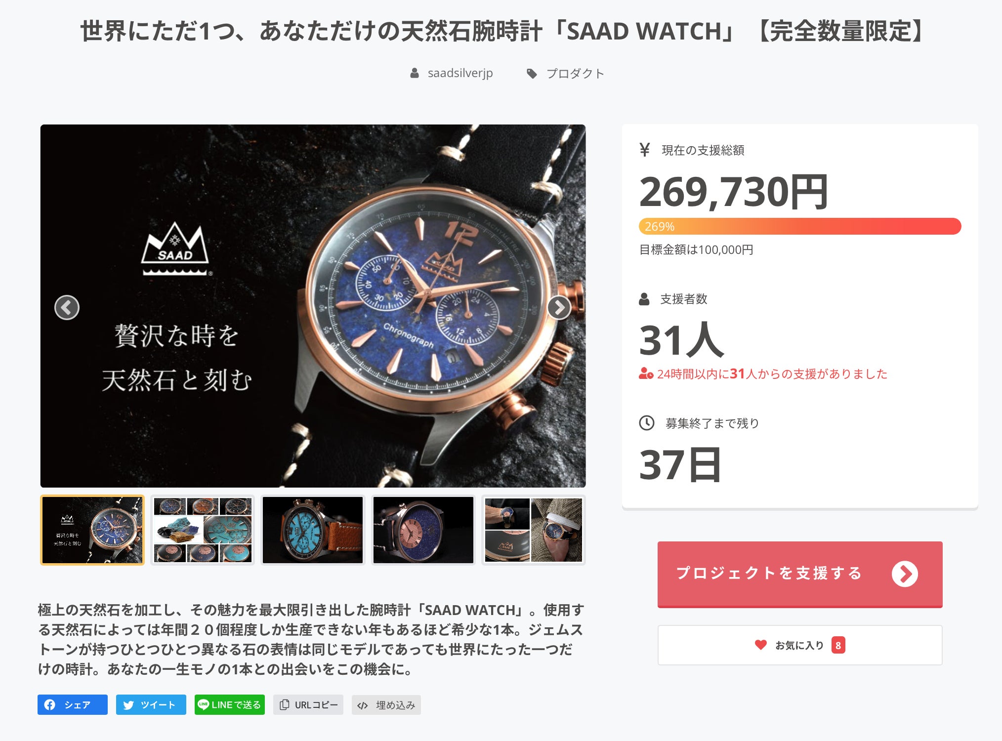 世界に一つだけの時計【SAAD WATCH】が目標金額を
