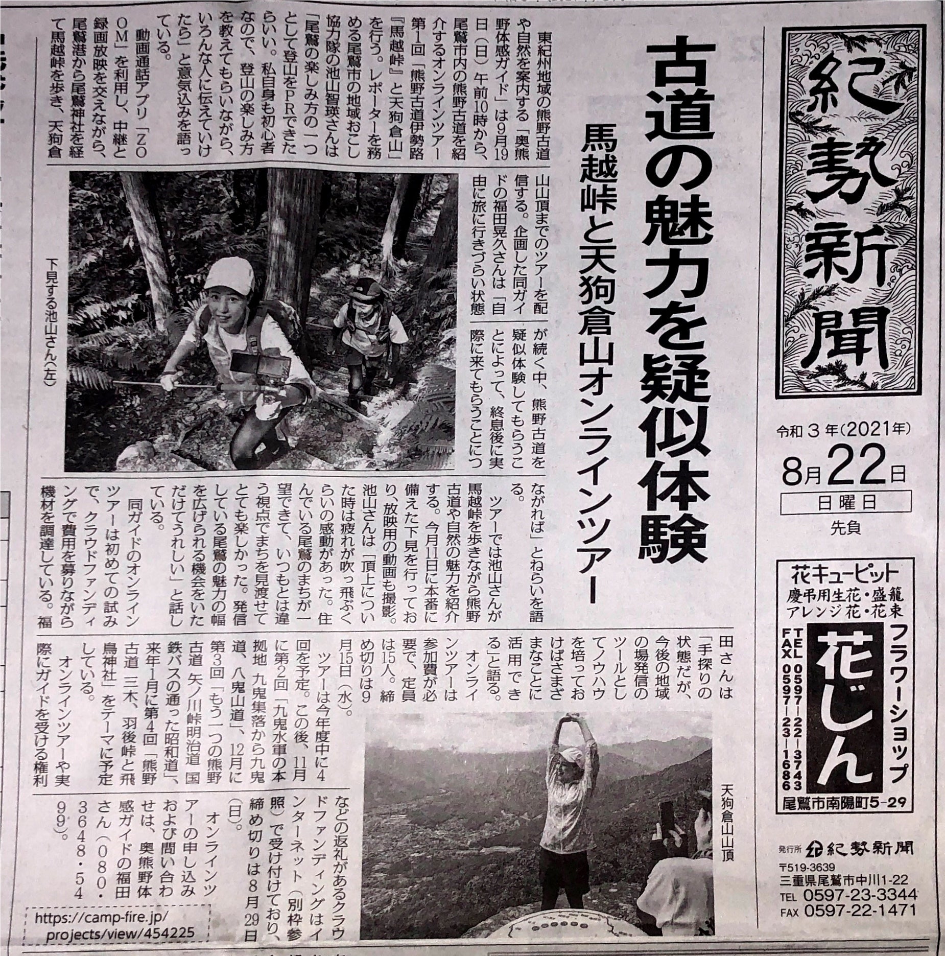地元紙 南海日日と紀勢新聞さんに取り上げていただきました。特に紀勢新聞さん、大きく取り上げていただきありがとうございました。