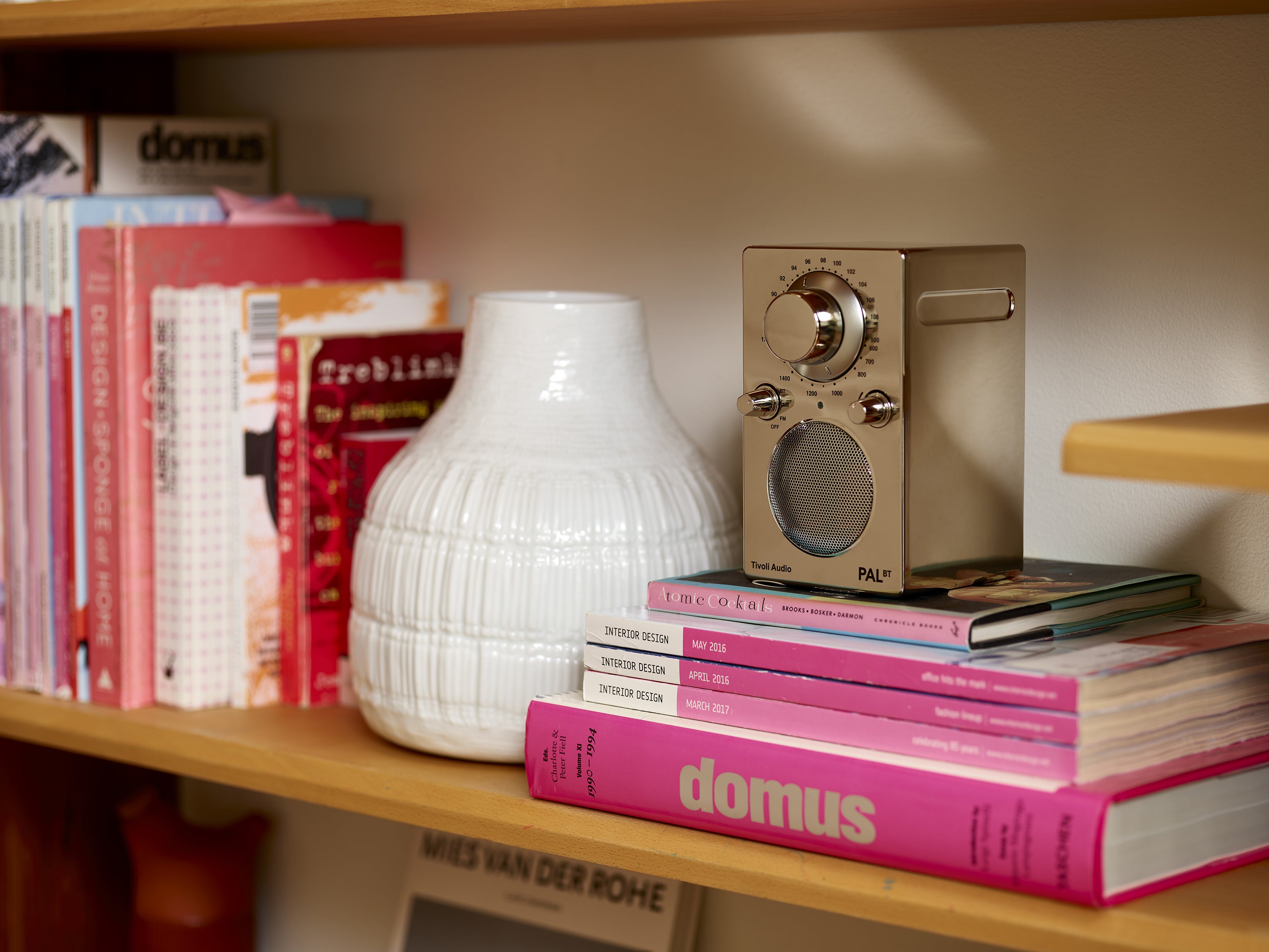 本棚の隙間に置いておけるほどのコンパクトなサイズ。ベーシックなホワイトは、どんなインテリアにもぴったり。