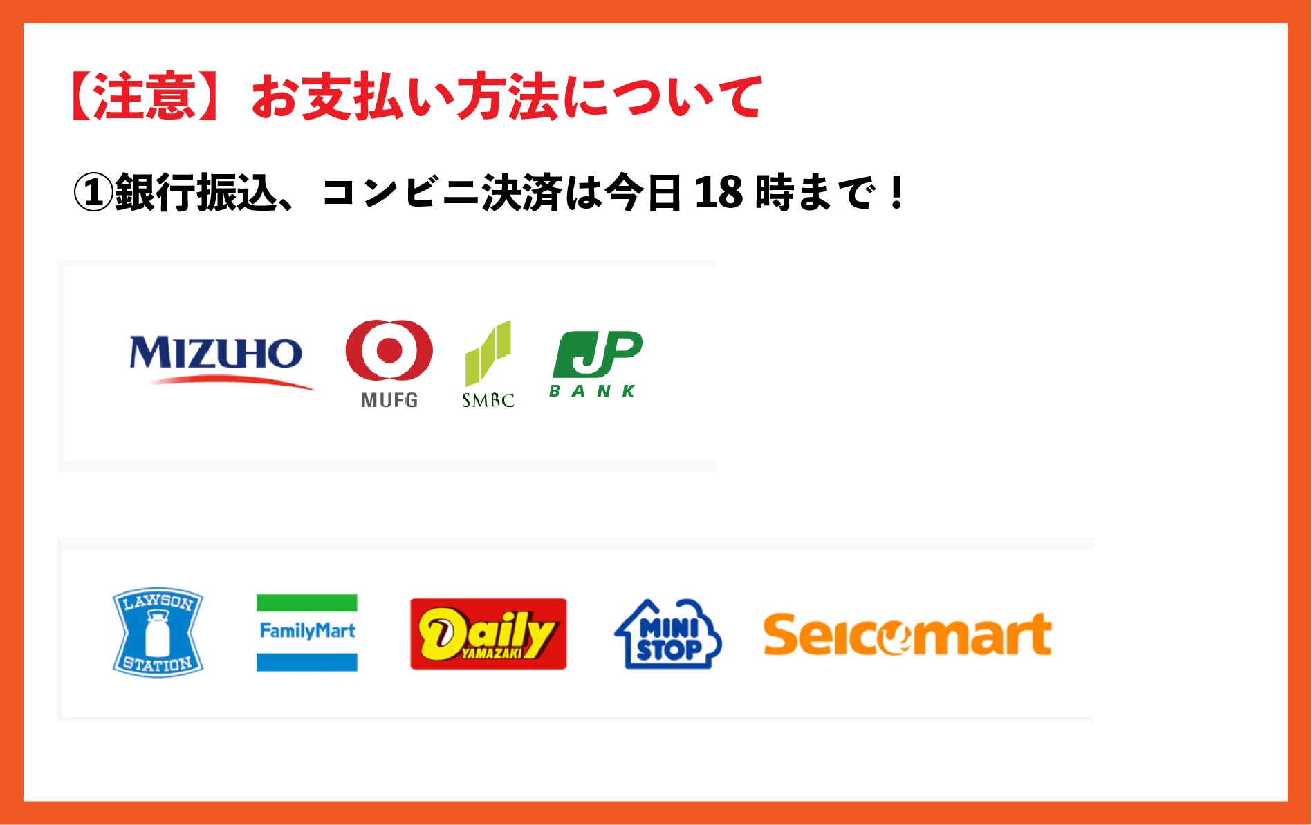 銀行振込、コンビニ支払いでのお支払いは