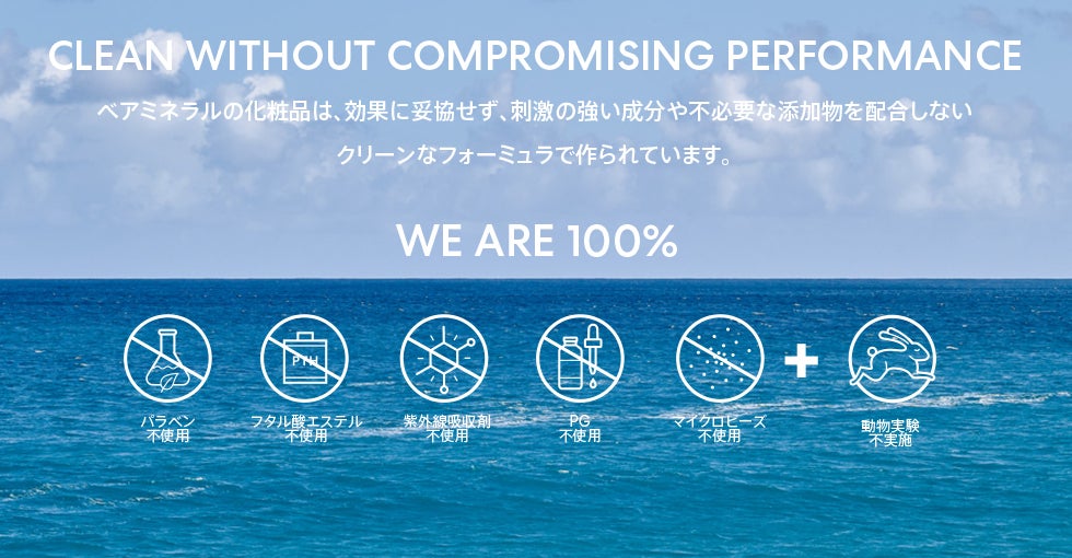 5種のミネラルだけを使ったオリジナル ファンデーションに代表されるように、「良いものだけをふんだんに、余計なものはいらない」をモットーに、4半世紀以上にわたり、クリーンビューティーのリーディングブランドとして、肌と地球に負担となる成分は使わず、動物実験も行わず、一貫してハイパフォーマンスなミネラル コスメにこだわり続けています。