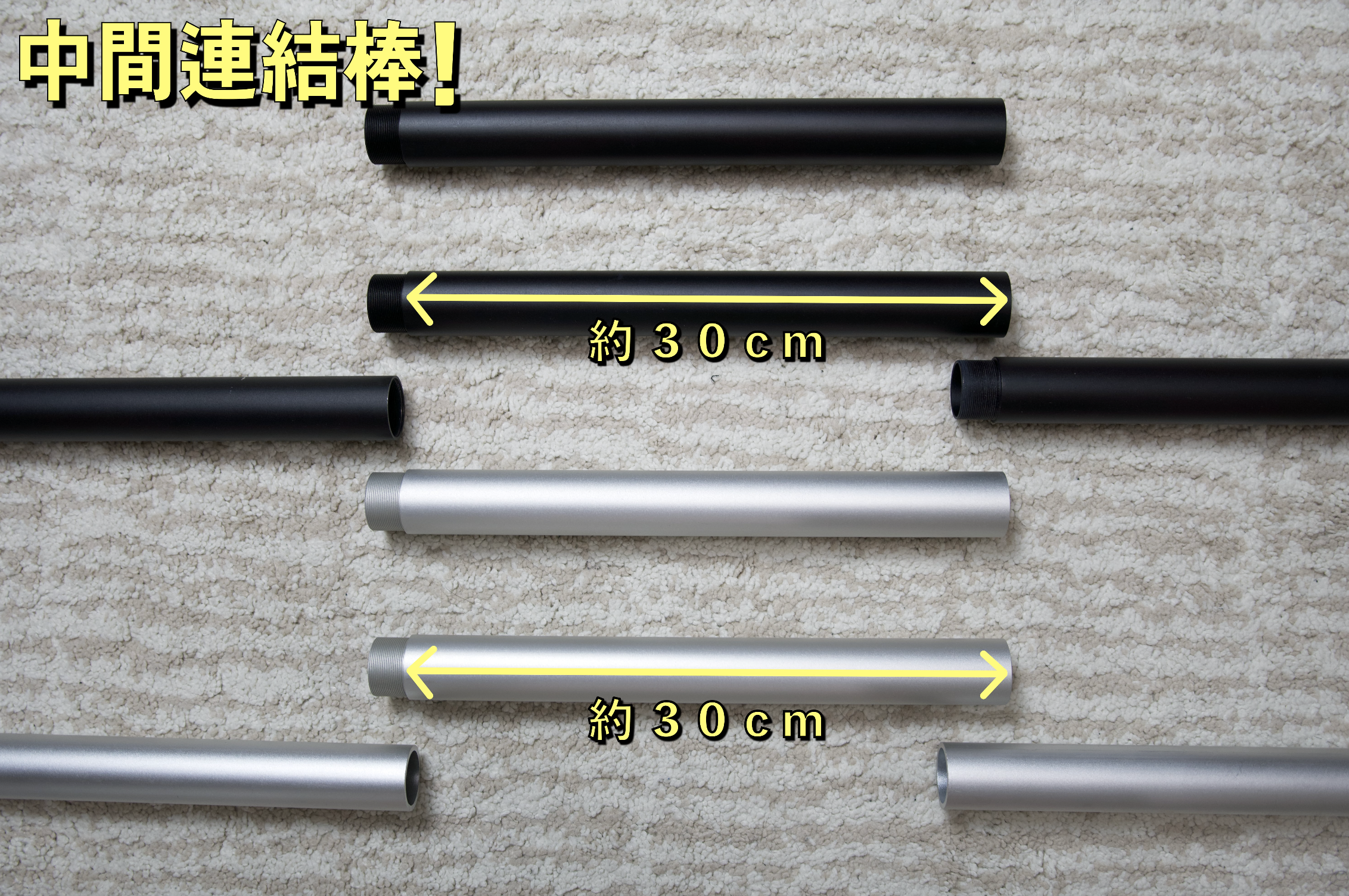 さらに連結棒を加えることで+30cm、+30cm…と調節できます!
