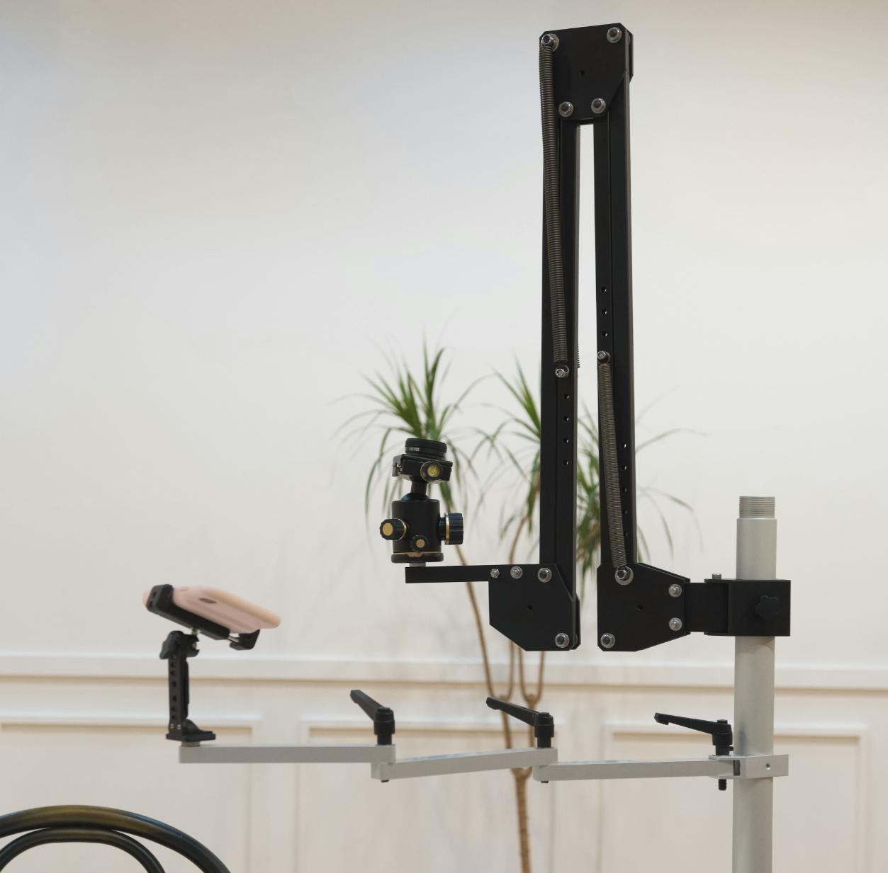 約1.5kgの照明機器を取り付けてもしっかり固定されて安定しています。