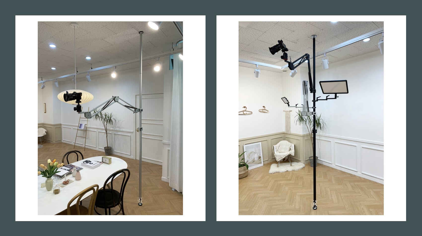 撮影環境によって天井の高さは異なります。スイングマウントは多様な環境にも対応できるよう研究されました。