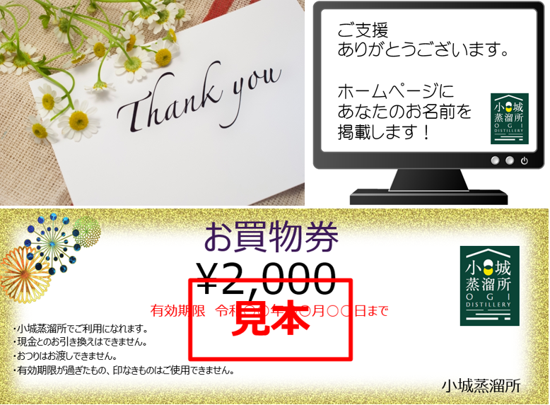 ★小城蒸溜所で使えるお買い物券2,000円分(有効期限1年)