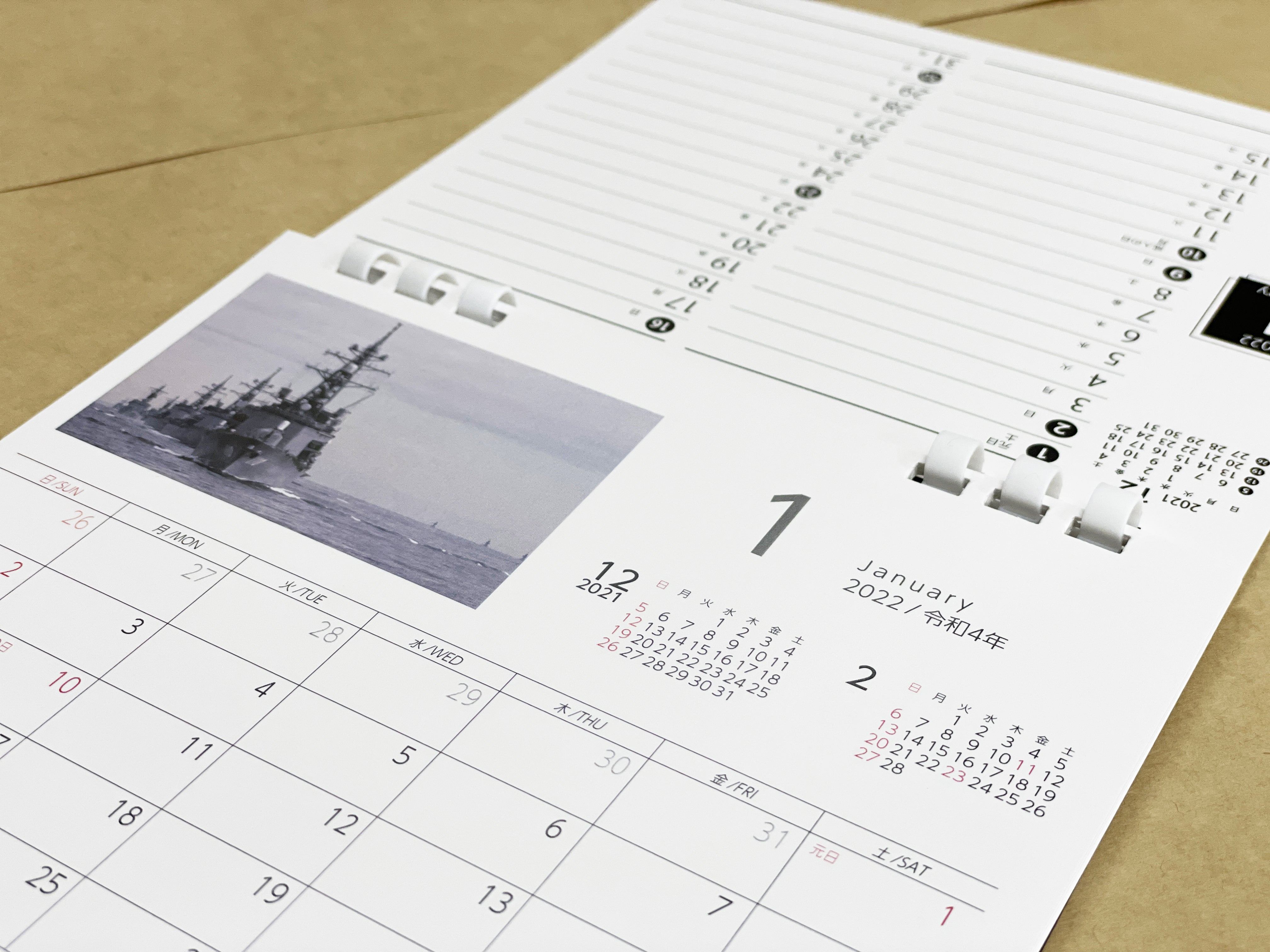 自衛艦が好きな方にもこれから知られる方にもきれい・かっこいいと思っていただける写真はどれなのかを、私たちの持っている写真から選び・考え抜いたもので自社工場でカレンダーの形まで製本いたしました。