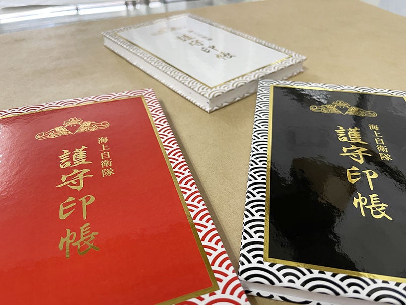 プロジェクト開始から1週間が経過しました。ご支援いただきました方々、誠にありがとうございます。目標達成に向けて頑張りますので引き続きご支援宜しくお願いします。護守印帳制作も改良を加え試作を重ねております。表紙の「海上自衛隊 護守印帳」文字の金箔押しの試作が出来上がってきました。どの色にも映えとても重厚感がある美しい仕上がりになっています!写真では、私の撮影の力不足でうまく伝えることはできませんがとても良い感じに仕上がっています。早く皆様の手にとって見ていただきたいです。※金表紙は黒色の箔押しです。