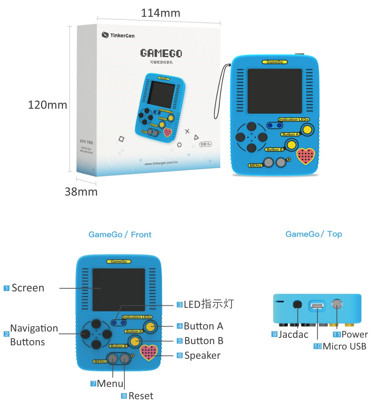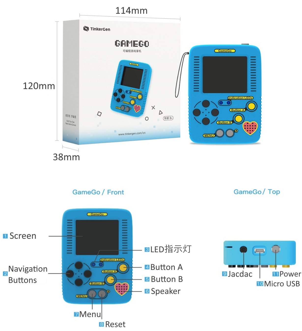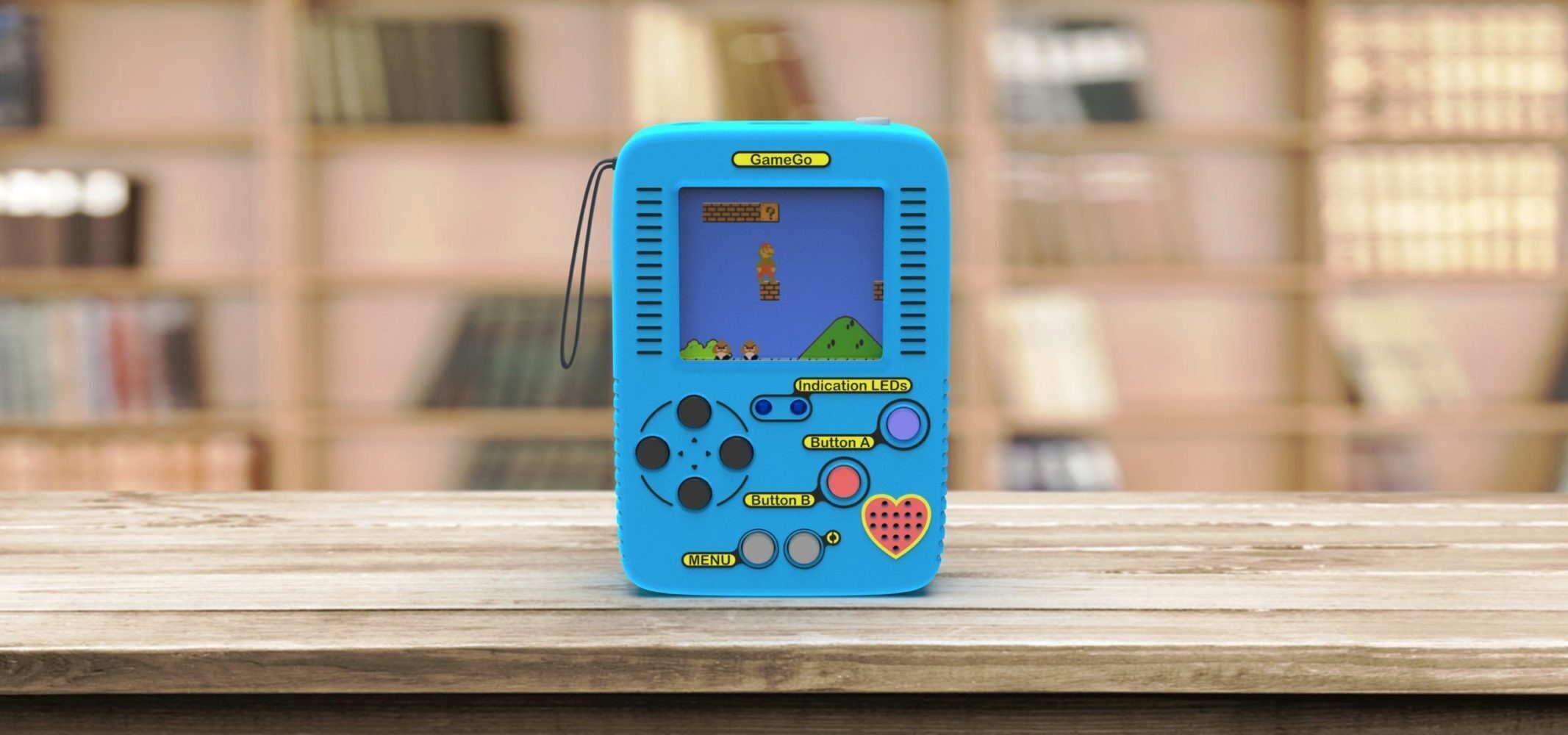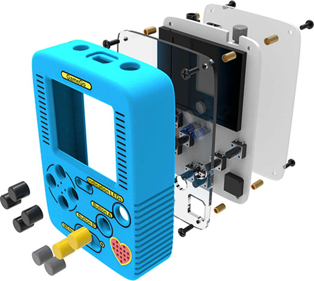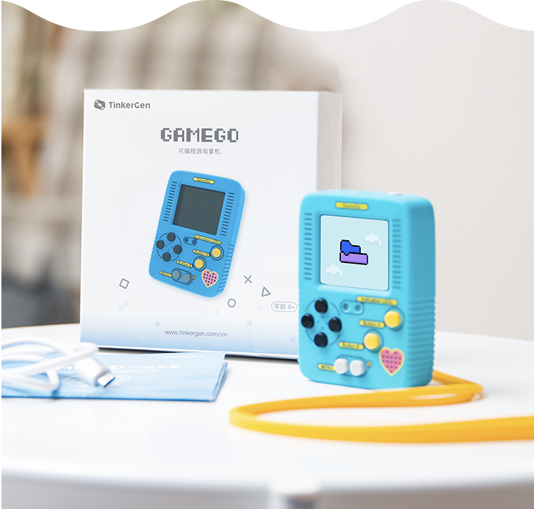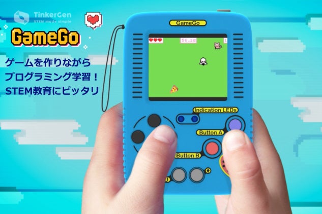 GameGoはMakeCode Arcadeでのゲームプログラミングと、レトロなアーケードゲームのアイデアをサポートするプログラマブルゲーム機です。 プログラミングの知識と創造力でゲームを作ることができます。