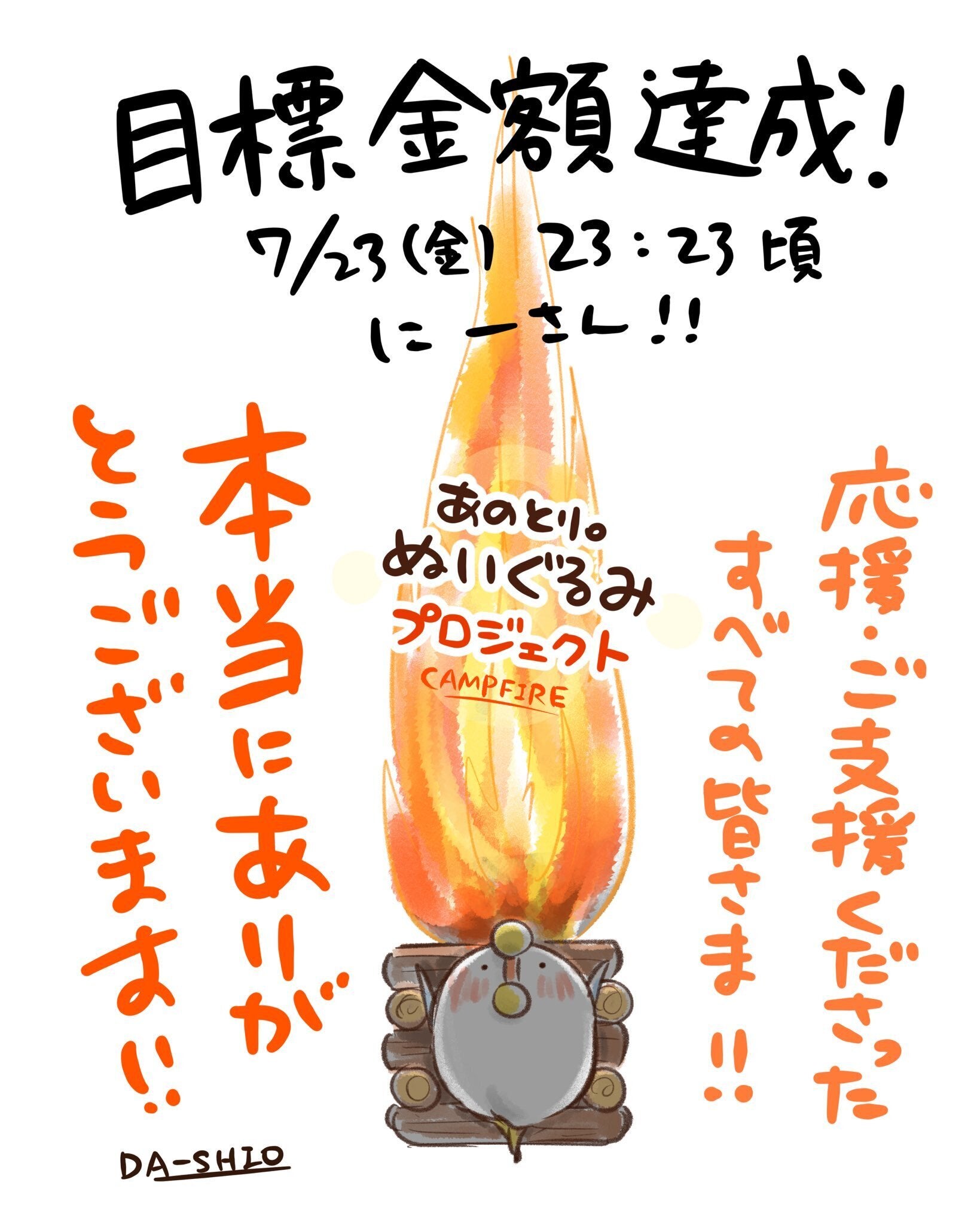 2021/07/27 11:44この度は「あのとり。ぬいぐるみプロジェクト!」をご覧いただき、誠にありがとうございます。CAMPFIRE Creationスタッフです。 7月23日にスタートしたクラウドファンディングは、皆様からの熱いご支援のもと、開始半日で目標金額を達成することができました!! ぬいぐるみの量産が決定し、非常に嬉しい気持ちです!たくさんのご声援、本当にありがとうございます。 プロジェクトは達成しましたが、まだ始まったばかり。プロジェクトは8月22日 23時59分まで引き続き挑戦しております。 終了までにより多くの方に本プロジェクトを知っていただきたいと考えておりますので、ぜひSNSや口コミなどでの拡散にご協力いただけますと幸いです。 どのリターン品も皆様に喜んでいただけるよう製作を進めてまいりますので、楽しみにお待ちくださいませ。引き続きのご声援よろしくお願いいたします! CAMPFIRE Creationスタッフ もっと見る
