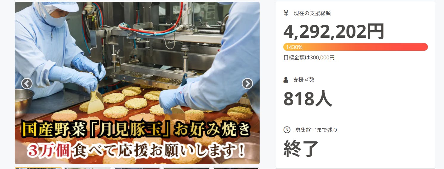 2023/11/25 17:50ご無沙汰しております!フジキン光来です。今回、物価高に伴いコロナ禍に支えて下さった皆様に少しでも還元できればと、新規プロジェクトを公開しました!国産のお肉と野菜たっぷり点心で、生産者を支えながら美味しい満足を届けたい!https://camp-fire.jp/projects/view/693540 植物油や小麦粉、原料全般がすごいスピードで値上がりし輸入品に頼る構造に限界を感じることが多くなりました。今回の機会に改めて国産のお野菜や、お肉をちゃんと使い安心安全はもちろん。しっかりと国内の生産者に還元されていくことが将来私達が食べる食品の投資になると考えています。そしてそれらの食材を美味しく皆様に届けるのが私たちの役目として、今回のプロジェクトでお伝えできればと思います。国産のお肉と野菜たっぷり点心で、生産者を支えながら美味しい満足を届けたい!https://camp-fire.jp/projects/view/693540 もっと見る