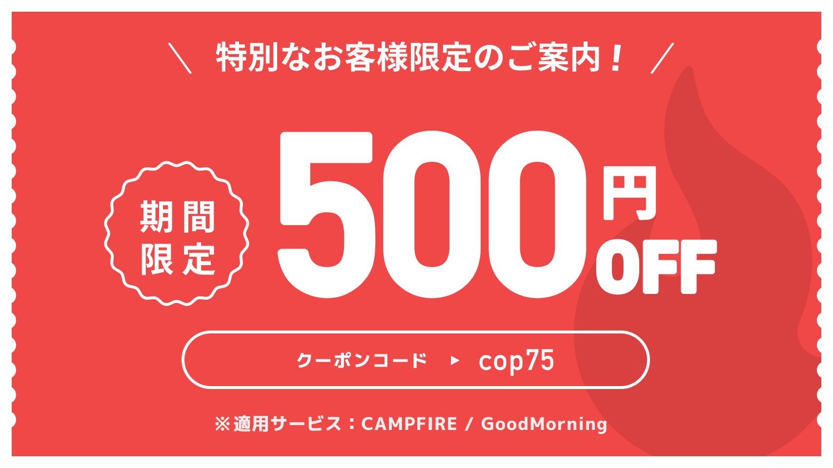 キャンプファイヤー様よりご支援者様向け500円クーポンが配信されました!