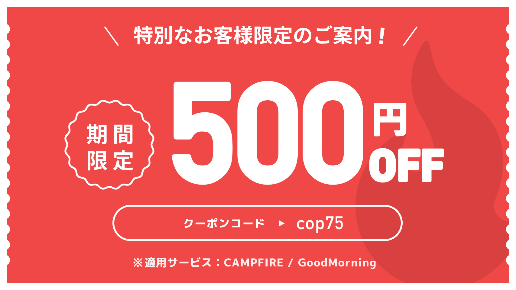 この度は多くのご支援誠にありがとうございます!ご検討中の皆様に、本日14日まで対象の500円クーポンのお知らせをいたします!キャンプファイヤーにてコロナウイルスに立ち向かうプロジェクトとして該当プロジェクト内どのリターンでも使って頂ける500円クーポンが配信されました!既にご支援頂いた方もいらっしゃるかと思いますが本日までの大変お得な内容となります!湯煎で温めるだけで、栄養たっぷり本格スープをお楽しみ頂けますのでご家族様や、仕送りなどにも、ぜひご検討いただけたらと思いますぜひ拡散いただきご利用いただけたらと思います!クーポンコード:cop75【クーポンの使い方】・プロジェクト支援画面のクーポンコード欄に、コードをご入力下さい!どうぞよろしくお願いいたします。