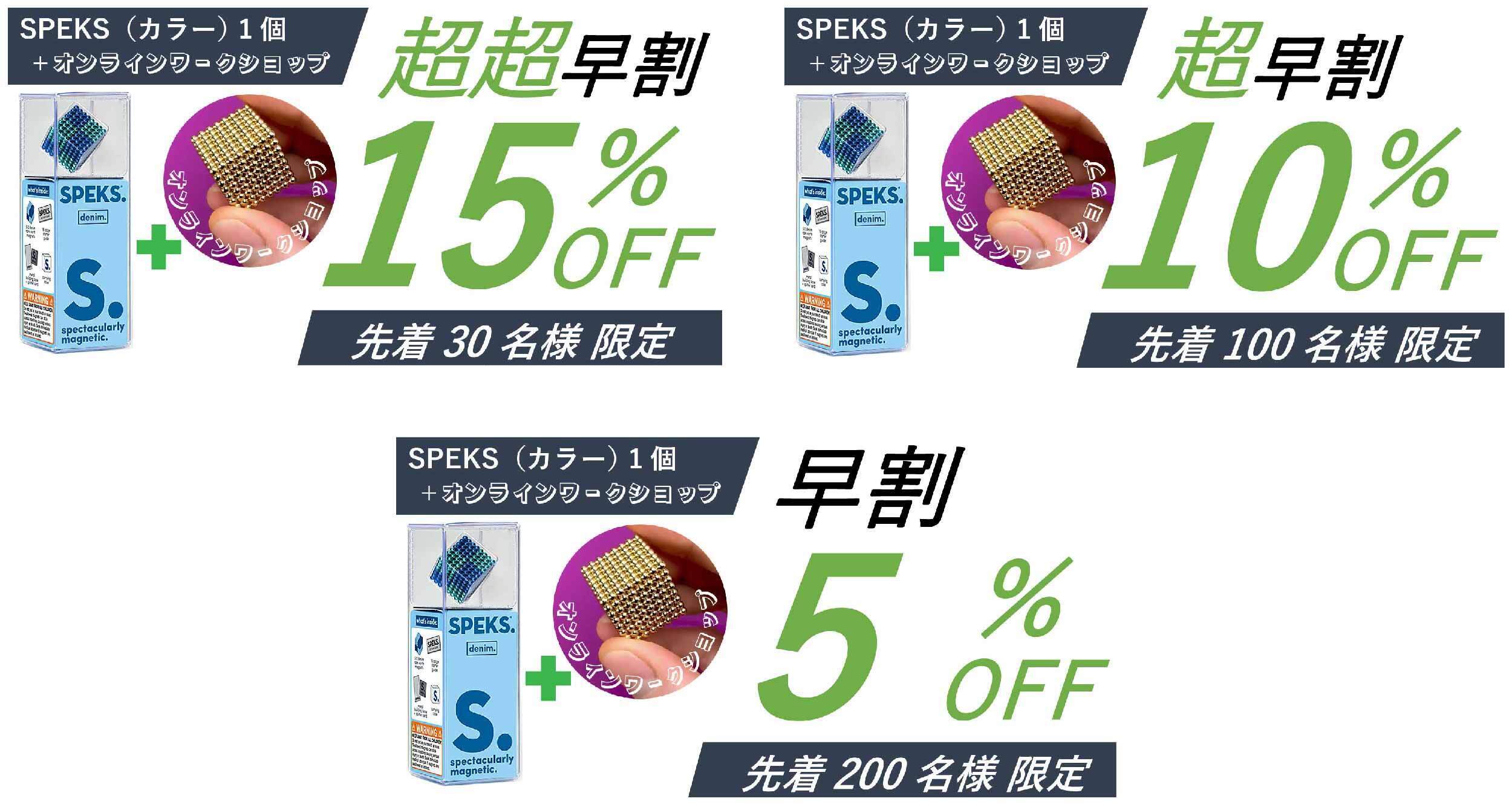 ■SPEKS(カラー)5個+ワークショップ参加権/最大30%OFF!! *下記12色から選択