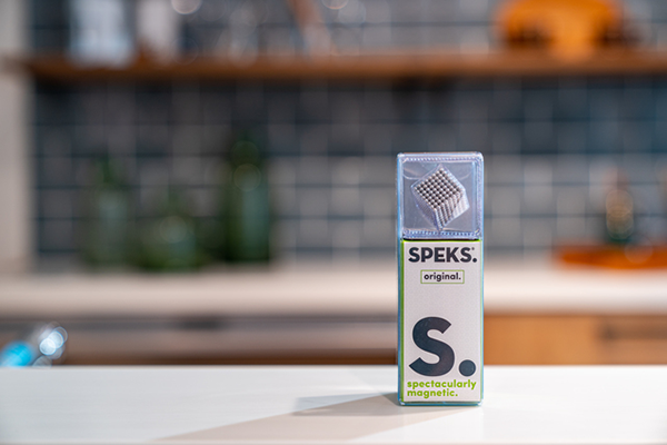 Retrospective Goods,LLCはアメリカで大ヒットしたマグネットのおもちゃ「バッキーボール」や「Zen Magnets」を作っている会社の元CEOとクリエイターたちにより設立され、2017年に完全磁気のデスクトイであるSPEKS.発明しました。