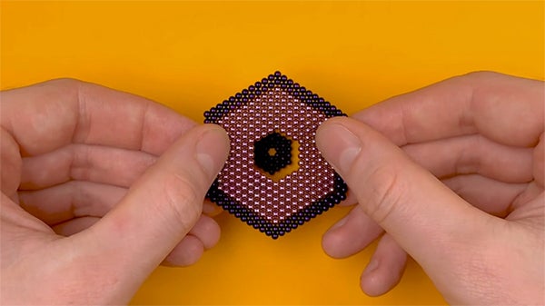 512個のマイクロマグネットが接続し、反発し、相互に作用して3Dデザインを作り出す様子は、デザインの驚異であり、信じられないほどクールです。(一部抜粋)