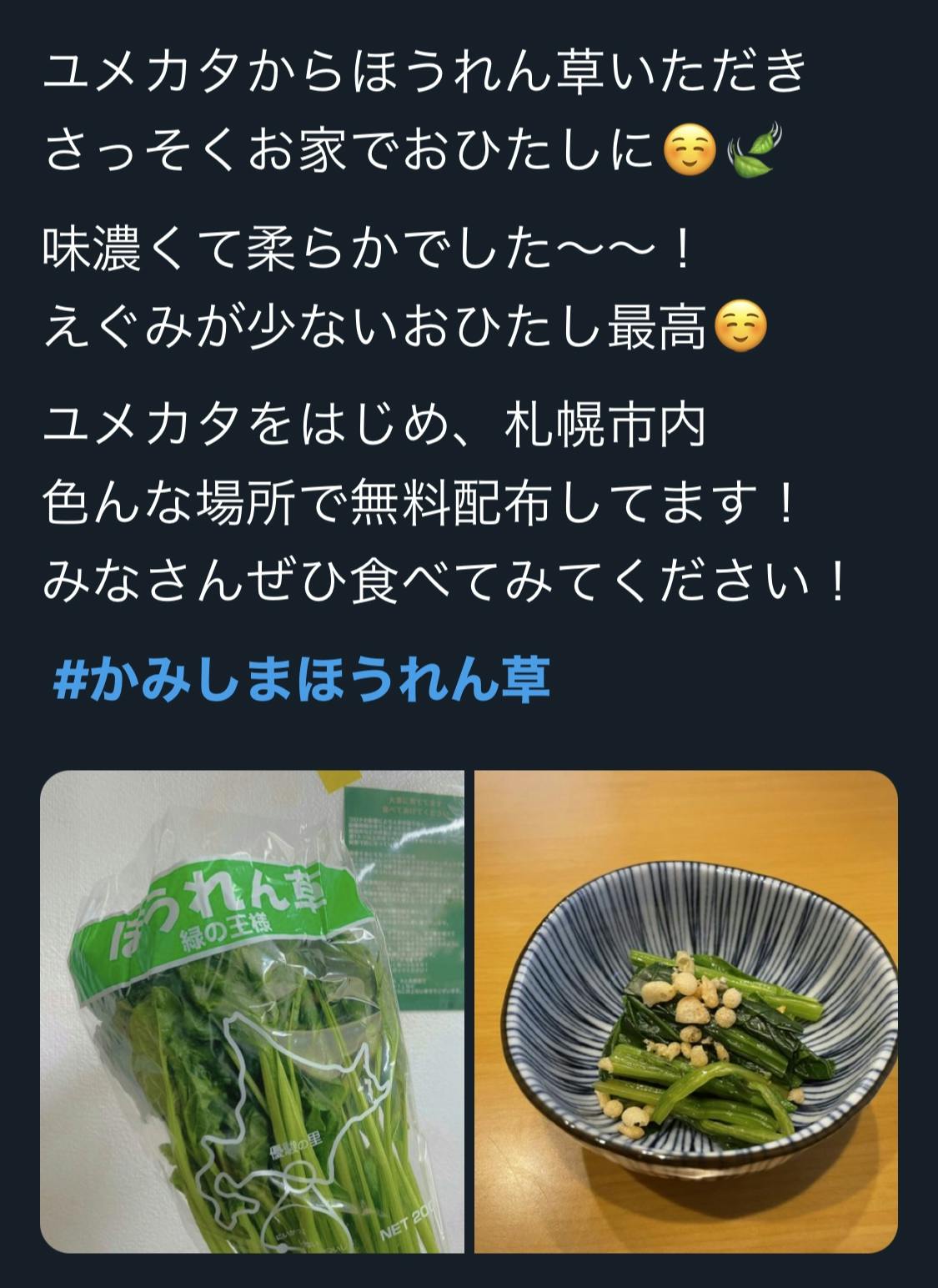 破棄するしかなかったほうれん草がたくさんの方に食べてもらうことが叶い