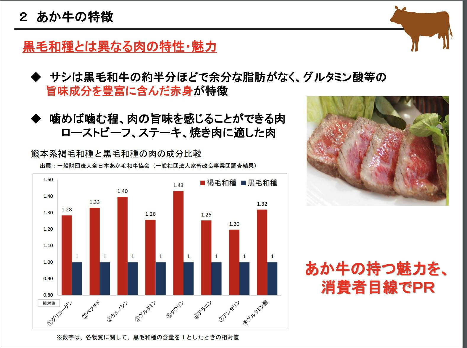 なんと黒毛和牛よりあか牛がグルタミン酸等の旨味成分が豊富です!!