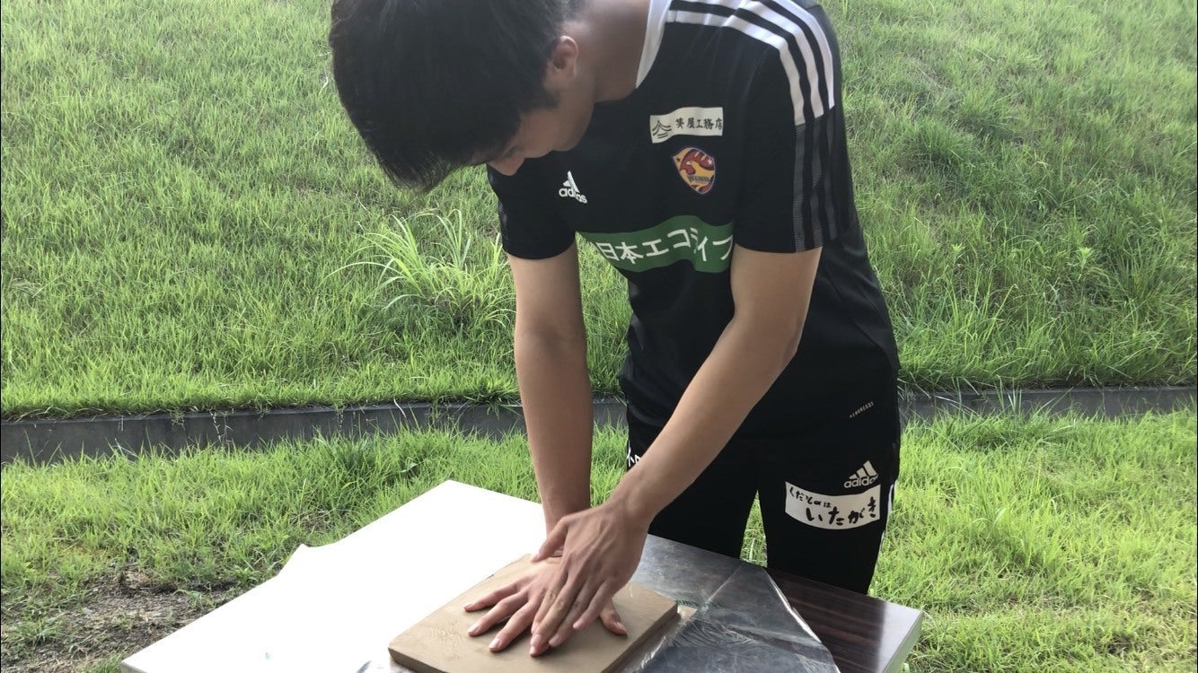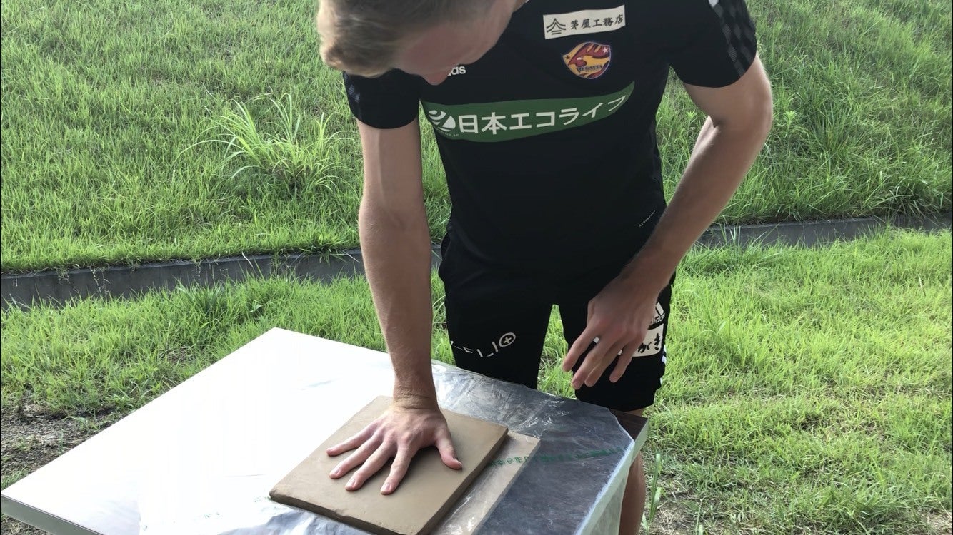 選手グッズ品の中には、七ヶ宿焼に「クバ選手」と「小畑選手」が直接手形を押し、