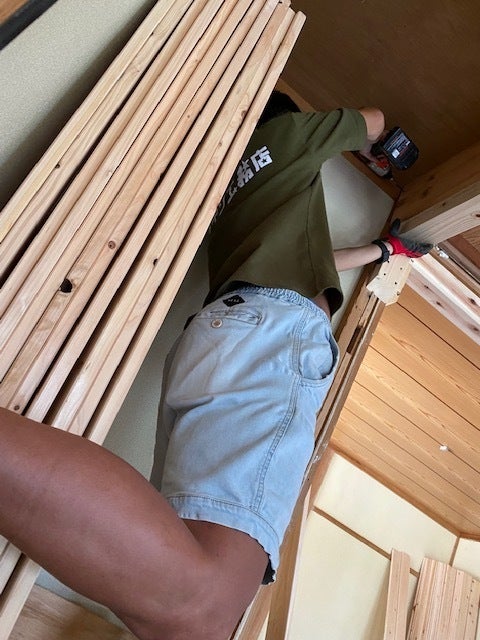 間仕切り?をUpした箇所と、壁ボードのパテ作業にはスパイダーマンが必要です!?