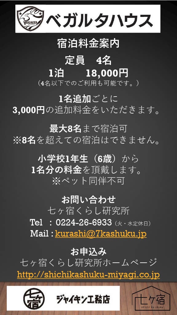 ベガルタハウスを簡易宿所として申請し、認可いただきました。