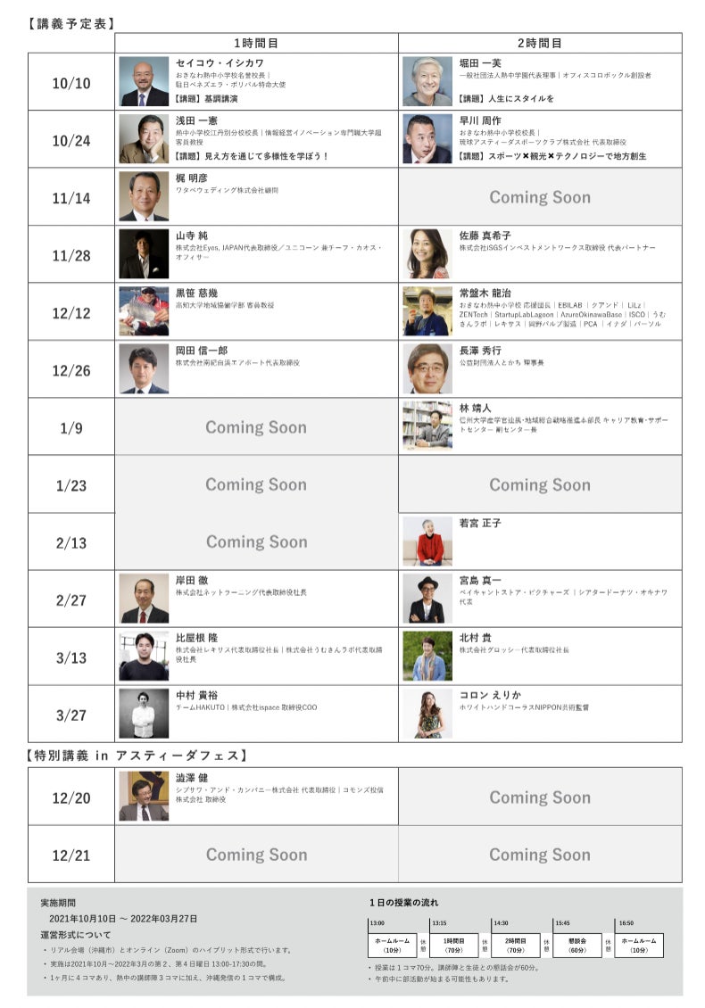 残り2日になりました!第1期(2021年10月10日〜2022年3月27日)におきなわ熱中小学校で登壇される先生が決定しました!ものすごく豪華な教師陣です!25,000円のリターンで入学可能です!あなたも第1期生になりませんか?