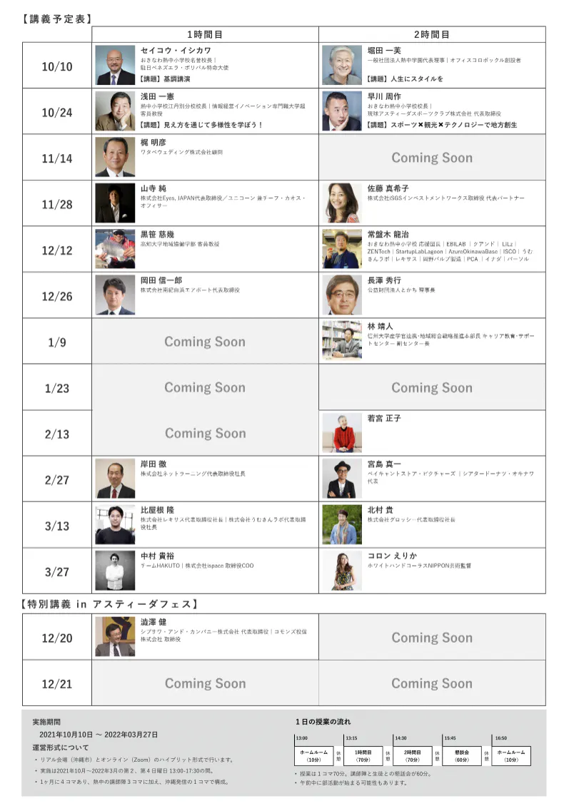 第1期(2021年10月10日〜2022年3月27日)におきなわ熱中小学校で登壇される先生が決定しました!ものすごく豪華な教師陣です!