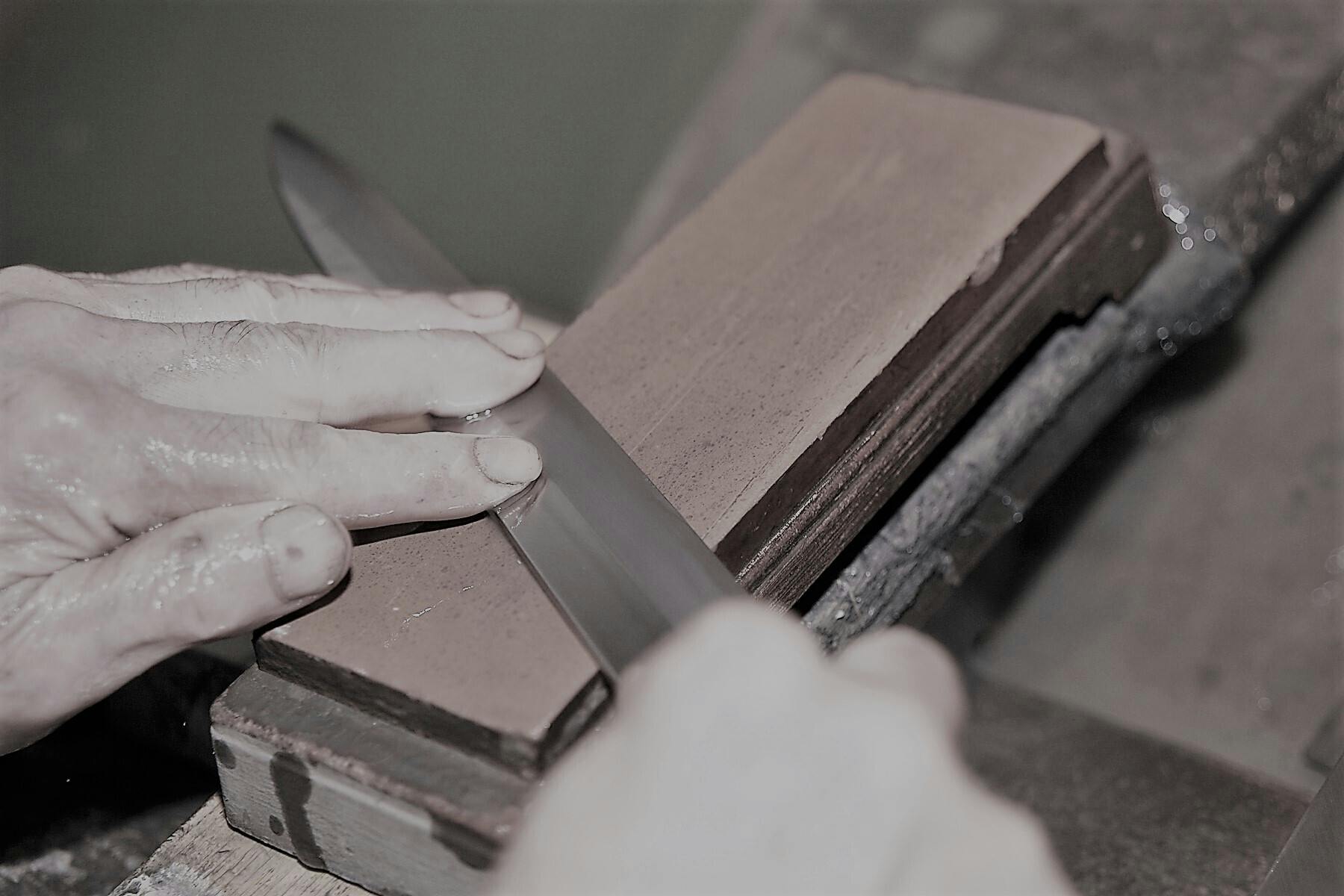 目透きの砥石目をつぶしてツヤを出します。ここを丁寧に当てることで刃に汚れが入り込みにくく錆びを軽減する効果があります。
