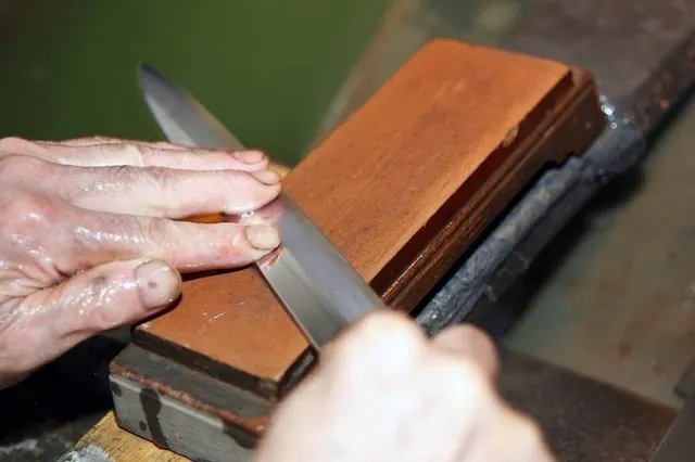 キャンプ専用ナイフ「EIJIN」はボルト・ナットをゆるめハンドルを外し、刀身だけにして、丁寧に砥いでください。