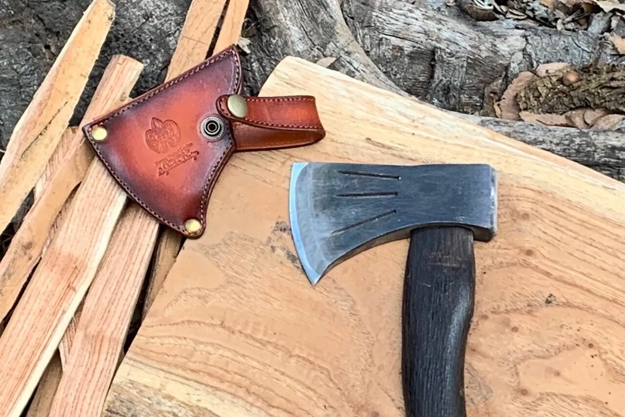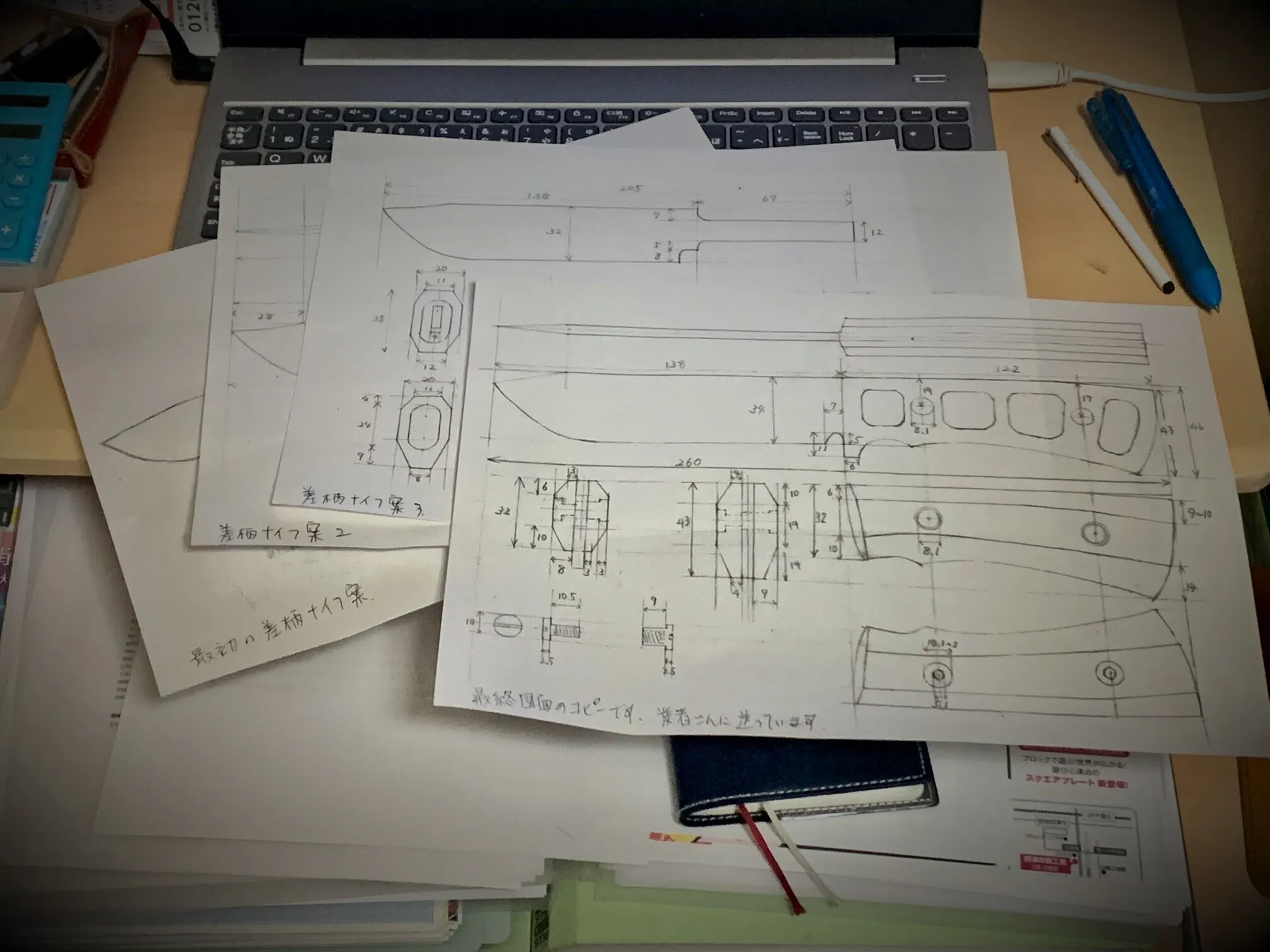 ハチェット(手斧)のオリジナルカバーを作ったりしてましたが、どうしても、①切る、②削る、③断つをすべて1本でできるナイフが欲しくて・・・