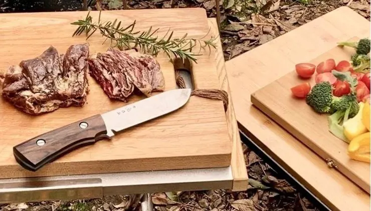 キャンプ専用ナイフ「EIJIN」は、野菜や肉のカットなどバーベキューの準備から、焚火用のバトニング(薪割り)まで1本でできる、完全オリジナルのアウトドアナイフです。